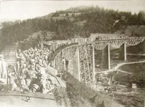 1915 год. Поезд с русскими пленными едет по мосту в Карпатских горах