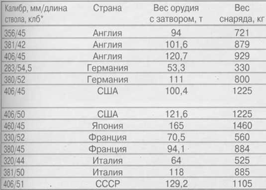 Значительный прогресс наблюдался и в области морской артиллерии. Рост начальной скорости снаряда, доминировавший в начале века в качестве меры улучшения баллистики, прекратился. Разгар ствола после нескольких десятков выстрелов приводил к столь значительному увеличению рассеивания, что терялись все преимущества в бронепробиваемости — орудия просто переставали попадать в цель. Поэтому скорости снаряда во всех странах, кроме Италии и Франции, начали сокращать, одновременно увеличивая вес снаряда. Старт этому процессу дала Россия, создав после Цусимы для 12-дюймовок своего флота «чемодан» весом в 471 кг, почти на четверть более тяжелый, чем стандартный английский или японский. Ну а «венцом творения» здесь стали американские 406-мм снаряды, разработанные перед Второй мировой войной: они превысили по весу свои аналоги 20-х годов почти на треть.