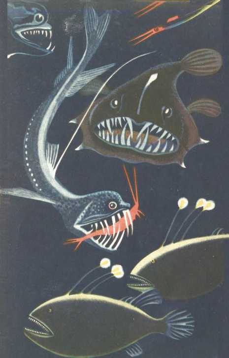 Подводя итоги всему сказанному, можно заключить, что большинство наблюдений, сделанных Бибом при его погружениях, явилось лишь блестящим подтверждением давно известного науке факта: характерной чертой обитателей подводных бездн является их способность люминесцировать.