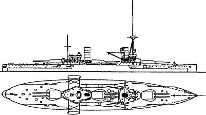 — вооружение: восемь 356-мм, двенадцать 152-мм, двенадцать 76-мм орудий и три 510-мм торпедных аппарата.