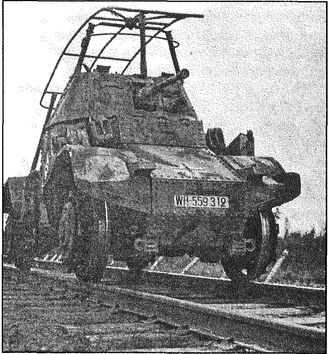 Бронеавтомобиль немецких войск «Panhard», способный передвигаться по железной дороге.