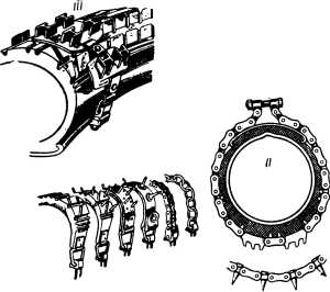 Для увеличения проходимости мотоциклов в зимнее время рекомендуется на покрышки применять цепи противоскольжения, шипы и другие приспособления. Цепи противоскольжения (рис. 162) обеспечивают наибольшую проходимость по снежным дорогам.