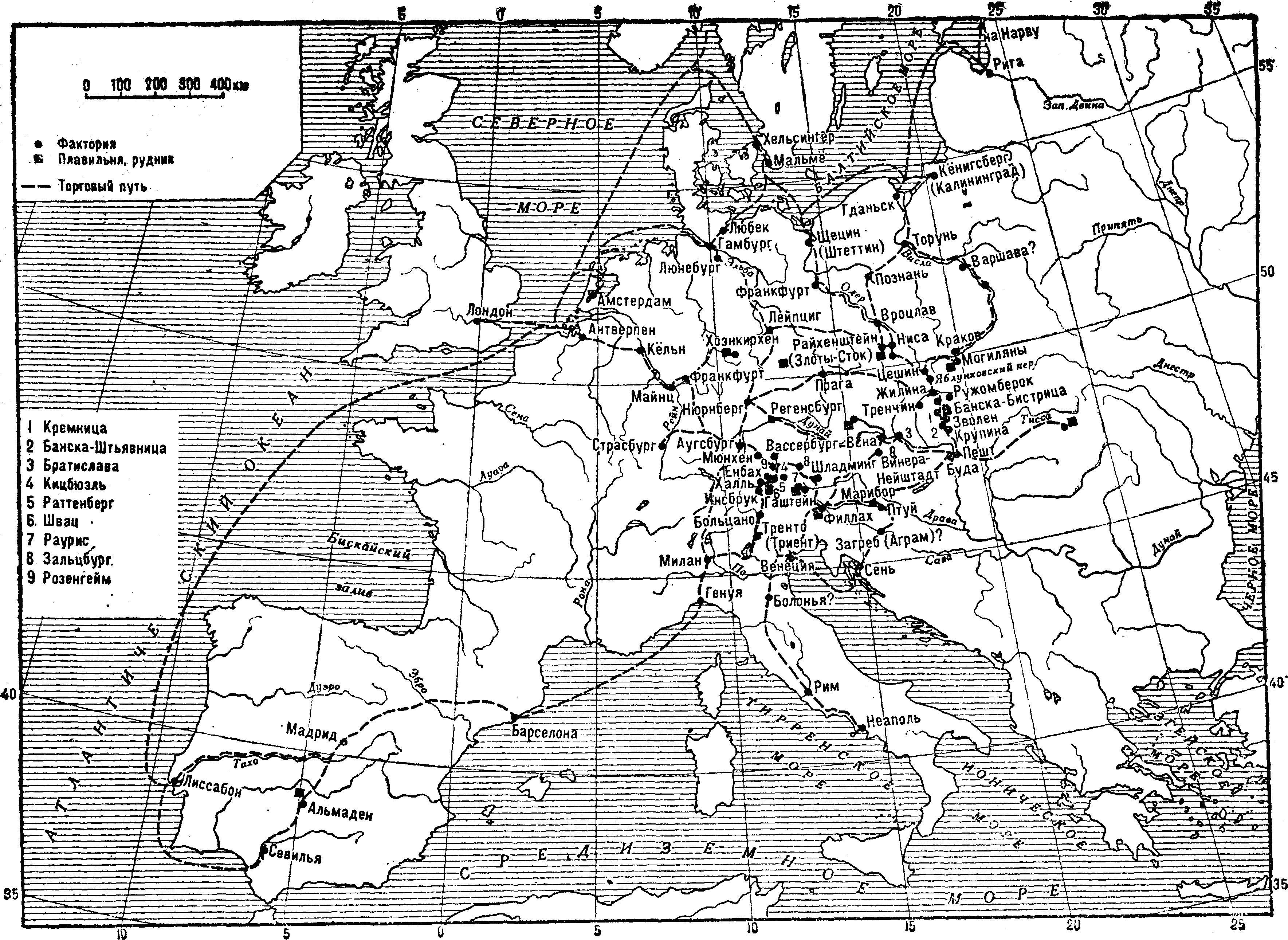 Тирольские месторождения серебра считались в XV и XVI вв. наиболее богатыми в Европе. Должно было пройти много лет с тех пор, как в долине реки Инн в центрах горнорудных районов Шваца и Кицбюэля была начата разведка месторождений, чтобы к 1470 г. резко увеличилось производство серебра на промыслах Фалькенштайн близ Шваца. С возрастающим успехом начиная с середины XV в. велась добыча серебра и меди в Штирии. С 1470 г. начались разработки серебра в районе Рудных гор, вначале на территории Саксонии в Шнеберге, несколько позднее — в Аннаберге, и в течение первых десятилетий XVI в. в Богемии, у Иоахимсталя (Яхимов). Одновременно расширялась добыча серебра и меди в горнорудном районе Мансфельд — Эйслебен и благородных металлов в тогдашнем венгерском Нейзоле (ныне — словацкая Банска—Бистрица), в Шемнице (Банска—Штьявница) и в Кремнице (Кремница).