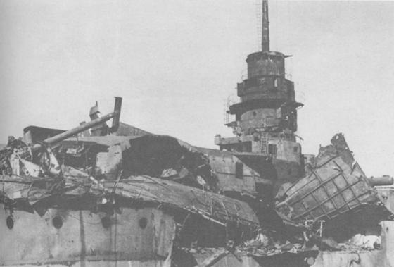 Боевые повреждения линкора «Дюнкерк», полученные 3 июля 1940 г.: