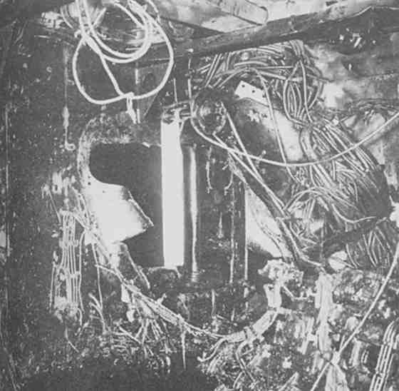 от 381-мм снаряда, попавшего в 130-мм башню правого борта