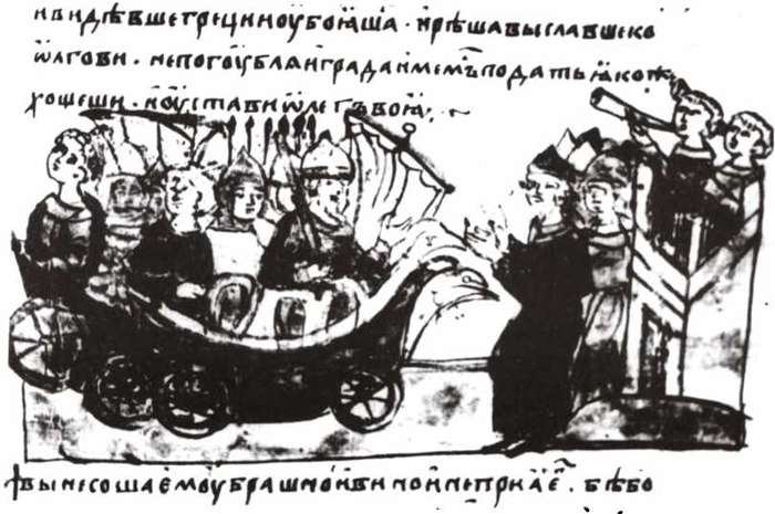 Руські дружини Олега під стінами Царгорода. Мініатюра Радзивіллівського літопису