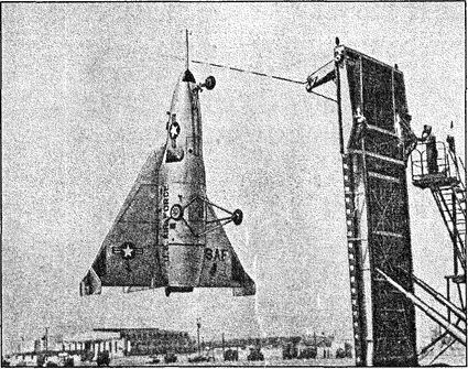 Не остались в стороне и американские ВВС — по их заказу в 1955 году фирма «Райан» построила два самолета с вертикальным положением корпуса на взлетно-посадочных режимах. Эти самолеты с треугольным крылом оснащались реактивными двигателями фирмы «Роллс-Ройс» тягой 45,4 кН. Машина, названная «Вертиджет», получила обозначение Х-13 согласно принятой в США классификации. Так как на этих реактивных самолетах поверхности элементов управления не обдувались сходящими с воздушного винта потоками воздуха, то они не обладали достаточно высокой эффективностью при малых скоростях. Поэтому управление на таких режимах обеспечивалось посредством поворотного сопла. У пилота тоже было как бы два комплекта приборов управления. В декабре 1955-го были начаты летные испытания, но на первом этапе летательный аппарат был оснащен временным трехколесным шасси, которое позволяло проводить взлет и посадку как у самолета.