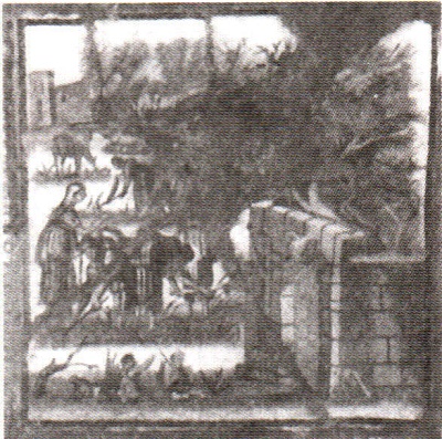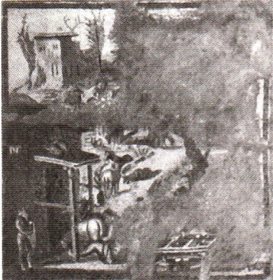 Молочная ферма на вилле. У входа в хлев, перед которым расположена пристройка с амфорами для молока, находящимися на крыше, сидит пастух, он доит козу. В центре пасутся козы и овцы, на заднем плане виднеется главная постройка молочной фермы. Позади пастуха стоит стол, на котором видны цилиндрические корзины для изготовления сыра. Ср. подобные сцены на lanx quadrata [квадратная чашка (лат.)] которая была найдена в 1729 г. в Дербишире (Англия), хотя она галльского происхождения (Байо, Нормандия).