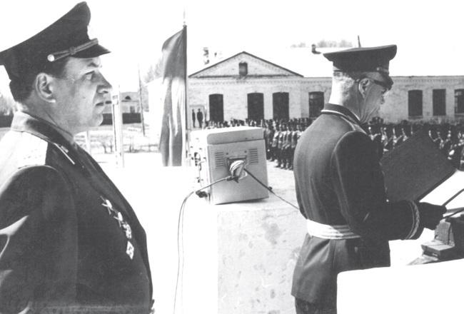 Конечно, новыми были для меня и впечатления о людях, с которыми теперь столкнула судьба. Хорошо запомнился командующий армией, генерал-майор Николай Григорьевич Штыков, человек очередных «разносов» (похоже, только из них его деятельность и состояла), переходил на грубости и унижение человеческого достоинства. Почти всегда, когда подходишь к его кабинету, чувствуешь, что «в воздухе пахнет грозой», и будто опять над тобой дамоклов меч. Но его заместитель, Герой Советского Союза, генерал-майор Баталов Григорий Михайлович, человек совершенно другого плана, внимательный, доброжелательный. Зная характер командующего, он мне как-то сказал: «Если дело терпит, подожди, когда за командующего останусь я или начштаба генерал Марущак, тогда приходи, обсудим, решим». Так иногда я и делал.