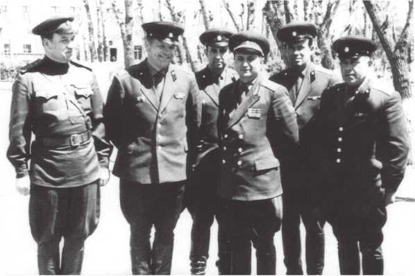 Генерал Смирнов А.Т. (третий справа) с группой офицеров ЦАВТУ в Уссурийске; Пыльцын А. В. (первый слева)
