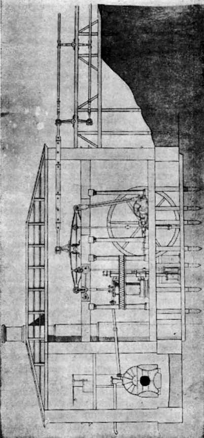 Фиг. 9. Паровая машина в 40 л. с., построенная Черепановыми для Владимирской шахты в 1830 г.
