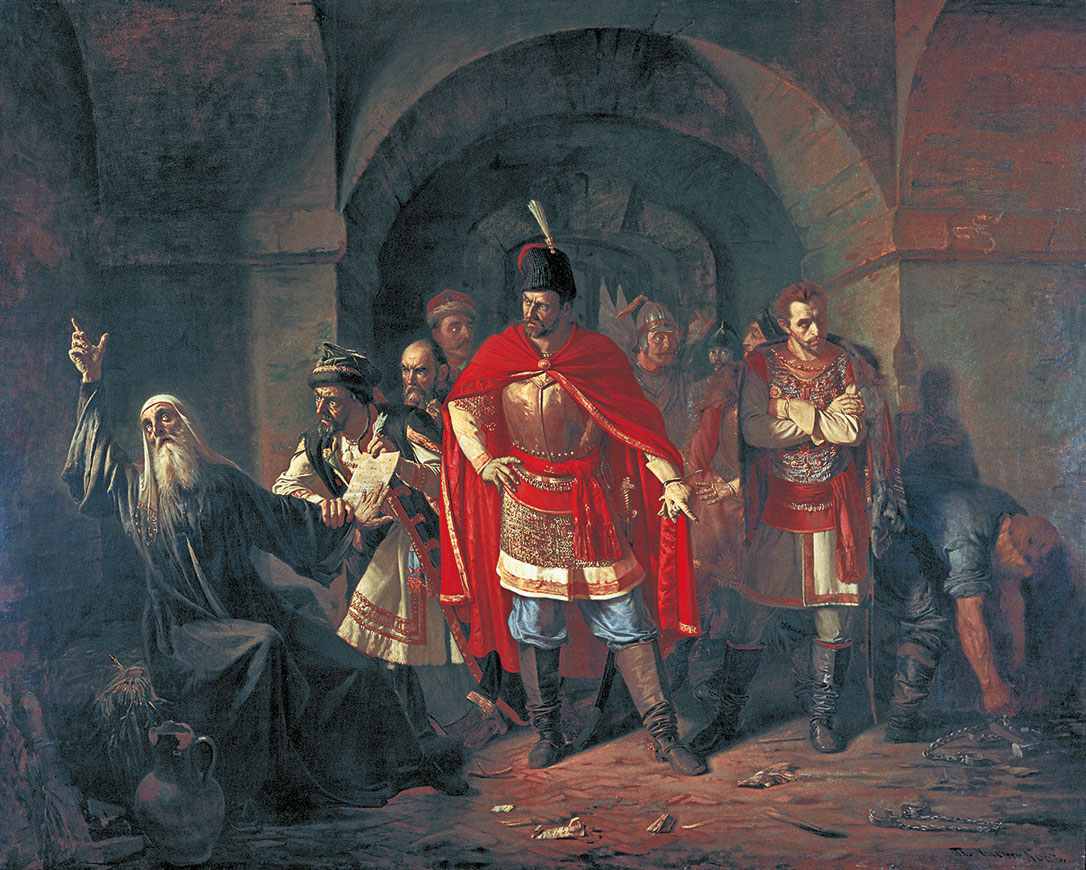 Явился Прокофий, стал уверять, что письмо фальшивое. Один из атаманов, не слушая, зарубил главу ополчения саблей.