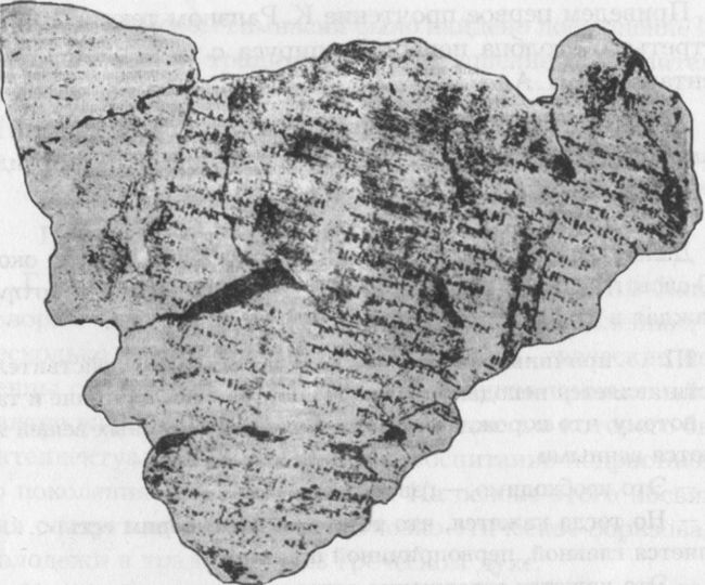 На глиняном полу библиотеки в Ай Ханум в нескольких фрагментах был найден отпечаток философского трактата [113] (ил. 93). Прочтение отпечатка папируса в археологической практике осуществлялось впервые [114].