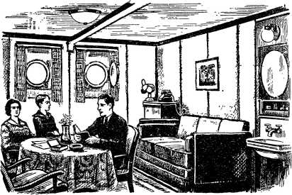Конечно, эти удобства сильно отличаются от той ненужной роскоши, которой стараются ради рекламы блеснуть пароходные компании капиталистических стран. Там все удобства рассчитаны на изнывающего от безделья и скуки капиталиста. К услугам миллионеров семикомнатные каюты с целым штатом прислуги, пальмовые сады и чересчур богато обставленные салоны в четыре этажа высотой. На таких пароходах бывает даже «собачья гостиница» с ванной и особой кухней.