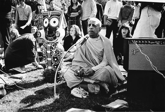 Засновник Міжнародного Товариства Свідомості Крішни (ISKCON) Шріла Прабхупада співає мантри у Парку «Золоті ворота» у Сан-Франциско в 1967 р.