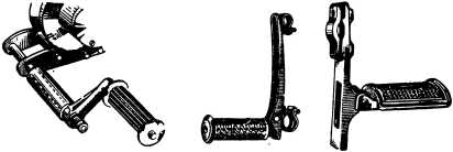 На современных мотоциклах для опоры ног мотоциклиста, а также и пассажира применяются круглые покрытые резиной подножки (рис. 155).
