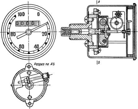 Счетный механизм состоит из нескольких счетных барабанчиков, свободно установленных на общей оси. На ободе каждого барабанчика нанесено 10 цифр (от 0 до 9). Барабанчики закрываются шкалой, на которой имеется прямоугольная прорезь. Во время движения мотоцикла первый правый барабанчик прибора непрерывно вращается.