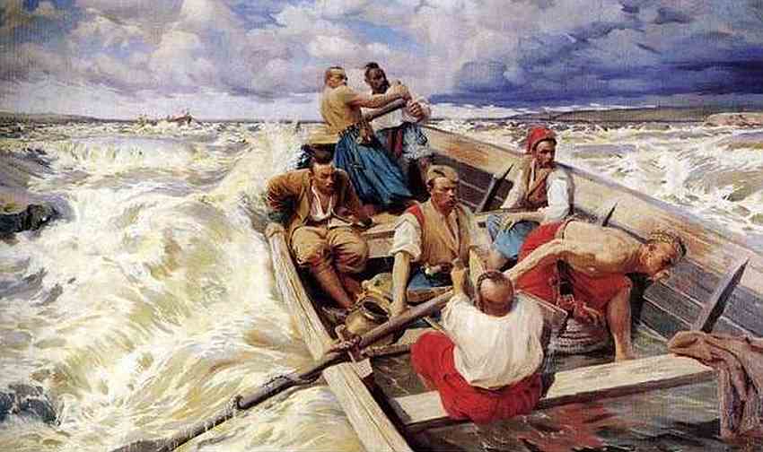 С. Чупруненко Запорожцы в лодке на днепровских порогах. XVII век