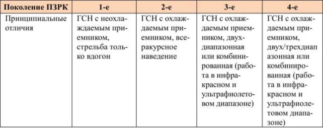 ТАБЛИЦА 1. Классификация моделей ПЗРК с ПК ГСН по поколениям