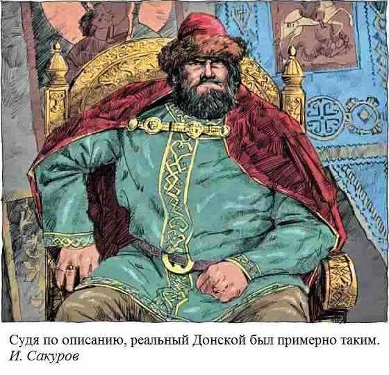 Внешность у князя была представительная: «Бяше крепок и мужествен, и телом велик, и широк, и плечист, и чреват вельми, и тяжек собою зело, брадою ж и власы черн, взором же дивен зело». Рослый, очень толстый, чернобородый, остроглазый – вот каким был Куликовский победитель.