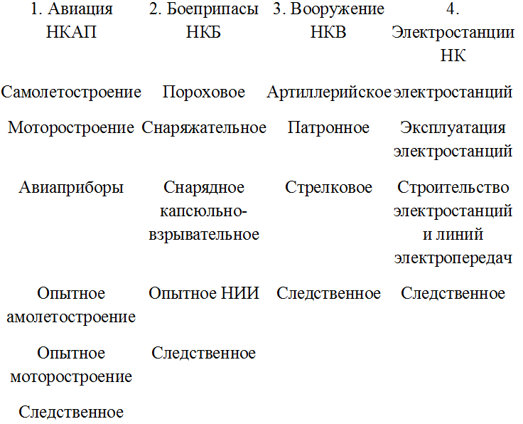 1. В составе Наркомата Государственной Безопасности СССР организовать специальное управление, на которое возложить обслуживание Наркоматов Авиационной промышленности, Боеприпасов, Вооружения и Электростанций.