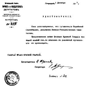 Воззвание штаб-квартиры Красной гвардии от 1 декабря 1917 г. с просьбой о поддержке организации еврейской самообороны