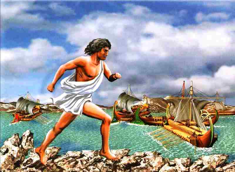 Греко-персидские войны подробно описаны замечательным древнегреческим историком Геродотом (V в. до н. э.) буквально по горячим следам. Повествование его проникнуто чувством патриотизма и гордости за свою родину. Еще в 490 г. до н. э. персидский царь Дарий I послал небольшой отряд, который должен был захватить Афины. Персы погрузились на корабли, переплыли Эгейское море и высадились на восточном побережье Аттики. Здесь, у города Марафона их встретило афинское ополчение во главе с полководцем Мильтиадом и в коротком сражении разбило и обратило в бегство. С вестью о победе в Афины был послан гонец, который пробежал без остановки 40 километров, отделяющие Марафон от Афин, сообщил согражданам радостную весть и тут же упал замертво. С тех пор спортсмены-бегуны соревнуются на «марафонской дистанции».