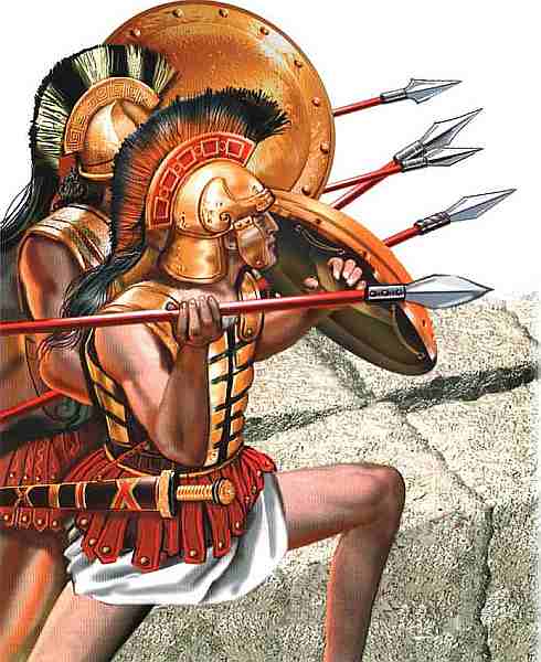 Кровопролитная междоусобная война так или иначе ослабила все греческие государства. Поэтому, когда у них появился новый могучий противник, они не смогли оказать ему достойного сопротивления. Речь идет о Македонии, расположенной севернее Греции и во многом воспринявшей греческую культуру. К середине IV в. до н. э. Македония чрезвычайно усилилась и стала претендовать на гегемонию над Грецией. Царь Филипп II (356–336 гг. до н. э.) организовал многочисленную хорошо вооруженную армию и стал один за другим захватывать ослабленные греческие полисы. Ударную силу македонского войска составляла фаланга, перенятая ими у спартанцев, но значительно усовершенствованная. Македонская фаланга состояла из тяжеловооруженных воинов с длинными копьями и строилась в 16 рядов. Важную роль в бою играла также конница, в которой служили знатные македоняне. Но Филипп II действовал не только силою. Прежде чем захватить тот или иной город, он привлекал на свою сторону часть его влиятельных граждан, не скупясь на богатые подарки. Подкупленные им люди агитировали сограждан в пользу Македонии, а когда приближалось македонское войско, открывали ему городские ворота. Филипп II с усмешкой говорил, что осел, нагруженный золотом, возьмет любую крепость.