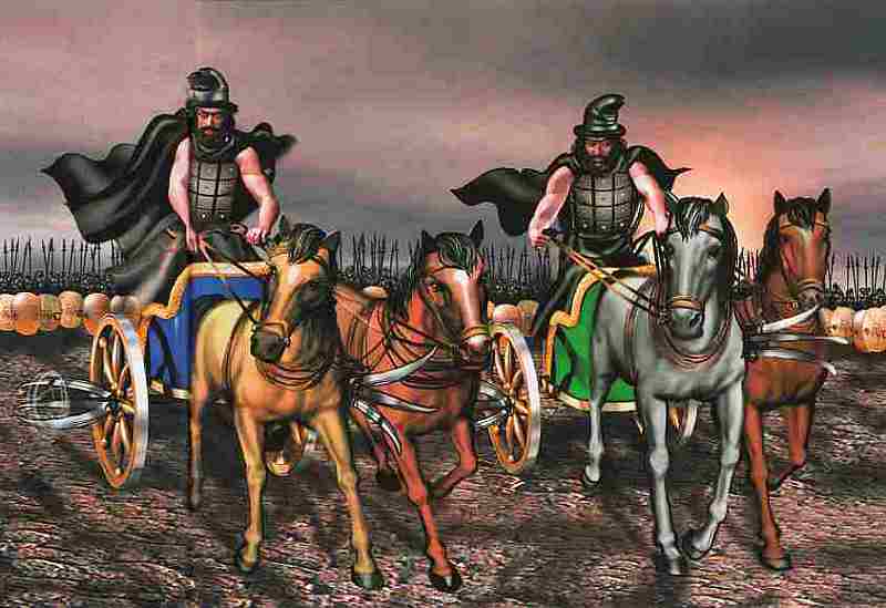 С рассветом обе армии построились для битвы. Атаку начали персы. Впереди их пехоты неслись боевые колесницы с прикрепленными к дышлам и колесам отточенными косами, которые косили противника как траву. Но македоняне расступились, пропустив колесницы сквозь свои ряды, а в спину управлявших колесницами посыпался град стрел. Почти все возницы были перебиты. Тем временем в бой вступила персидская пехота. Македоняне быстро построились в фалангу и отразили ее удар. Тогда Александр во главе тяжелой конницы врезался в ряды врагов, сея среди них смятение и ужас.