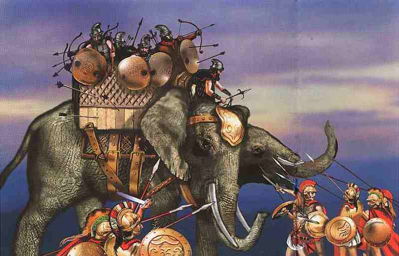 Невзирая на усталость своего войска, в 327 г. до н. э. Александр повел его на завоевание Индии. У реки Гидасп, притока Инда, произошло сражение с войском индийского царя Пора. Тут впервые македоняне столкнулись с новым родом войск — боевыми слонами. Уже один вид грозных животных с мощными бивнями приводил в трепет. Каждым слоном правил возница, сидевший на голове животного. На спинах слонов были укреплены небольшие башенки, в которых сидели лучники и метатели копий. Поначалу атака слонов произвела смятение в войске Александра. Но македоняне очень быстро справились со страхом и нашли уязвимые места у грозных животных. Раненые стрелами и копьями, слоны повернули назад и расстроили ряды своего же войска. Индийцы потерпели поражение.