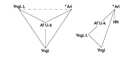 Действительно, «Перечень Инглингов» («Ynglingatal») является, по общему признанию исследователей, основным источником «Саги об Инглингах»[244]. Из 32-х скальдических строф, цитируемых в саге, 27 принадлежат Тьодольву. Однако время сочинения поэмы стало предметом длительной дискуссии[245]. И если согласно господствующей точке зрения «Перечень Инглингов» был сочинен Тьодольвом, придворным скальдом конунга Харальда Прекрасноволосого, в конце IX в., то не перестает обсуждаться вопрос о значительно более позднем происхождении этой поэмы. Так, К. Краг[246], разделяя мнение С. Эллехёя, что в основе древнескандинавской традиции об Инглингах лежит «*konunga ?vi» («^Жизнеописание конунгов») Ари Мудрого[247], приходит к выводу, что «Перечень Инглингов» не только не предшествует «*konunga ?vi» Ари[248], но, напротив, восходит к нему через группу текстов, включающих в себя «Прядь об упландских конунгах» (см. схему 6). Датировка «Перечня Инглингов», по Крагу, в таком случае не опускается ниже 1120 г. – предположительного времени создания «*konunga ?vi» Ари[249].
