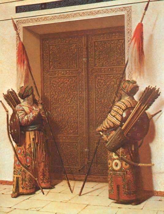 В. Верещагин «Двери Тамерлана» В декабре 1398 года армия Тамерлана остановилась неподалеку от Дели – последнего оплота индийцев. Вскоре из столицы Индии показалось войско под командованием самого султана Махмуда, включавшее 10 тыс. конницы, 40 тыс. пехоты и большое количество боевых слонов, на спинах которых восседали лучники. По бокам животных шли люди с емкостями, наполненными горючим веществом. Монголы также успели основательно подготовиться к сражению. Впереди фронта сделали ограду из щитов, за ней оставили буйволов с закрепленной на рогах высохшей колючей травой. Своим воинам Тамерлан наказал закинуть под ноги приближающимся слонам с пециальные железные крючки и поджечь обмотку буйволовых рогов. И вот закипела битва. Слоны, управляемые ловкими наездниками, двинулись вперед, и монголы, не выдержав их натиска, отступили. Тогда Тамерлан приказал атаковать индийскую пехоту, сопротивление которой его воины сломили довольно быстро. Однако никто из войска азиатского полководца не знал, как подступиться к слонам: осмелившиеся приблизиться к ним взлетали в воздух и попадали под их могучие ступни. Вскоре сражение окончилось. Остатки индийской армии вместе с султаном Махмудом попытались найти спасение в бегстве, а Тамерлан торжественно въехал в Дели. Перед битвой Тамерлан отдал приказ своим подчиненным зарезать всех пленных. Сделал он это из-за опасения, как бы пленники в решительный момент не выступили против монголов.