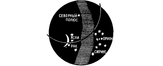 Обе царственно сверкающие планеты шествовали по пути богов к своей наивысшей точке. Над землей простиралась полночь, когда Великое соединение явилось в полном блеске над спящим миром. На востоке поднималось из глубин вселенной созвездие, в древности именовавшееся Яслями и ослом (нынешнее созвездие Рака). Оно находится неподалеку от ствола небесного древа, того священного места, где происходит великое таинство страданий и смерти, созидания и рождения. И, словно указывая путь в небесном пространстве Яслям и небесному древу, им предшествовали находящиеся в близком видимом соседстве на одной прямой три звезды одинаковой величины, образующие «пояс» Ориона.