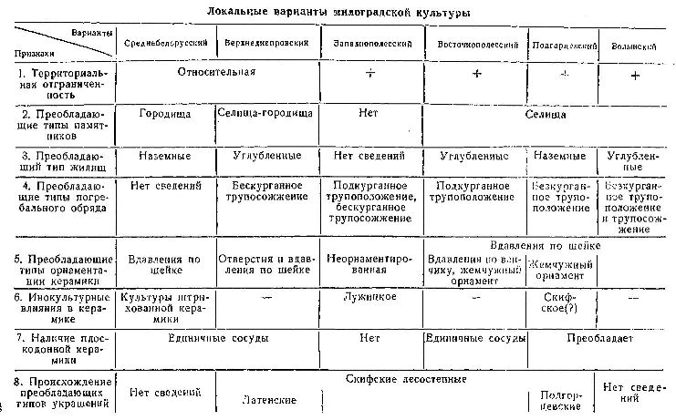 Локальные варианты милоградской культуры