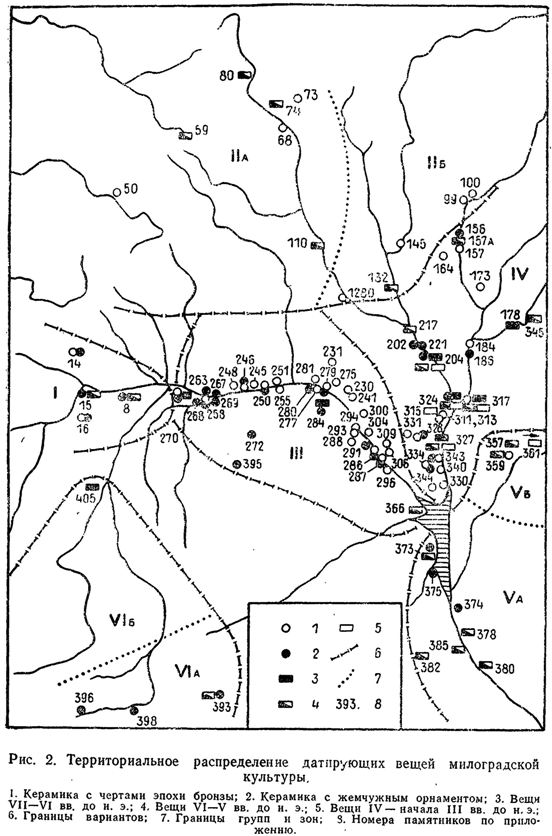 Рис. 1. Археологическая карта милоградской культуры