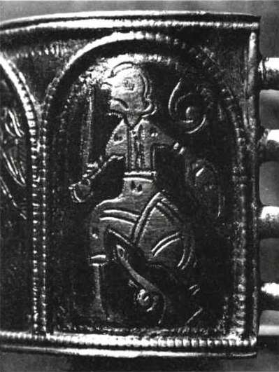 Зображення давньоруського воїна на срібному браслеті-наручі. XII ст. Київ
