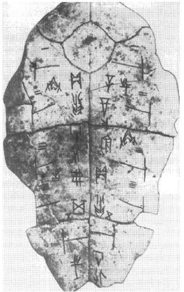 Широко было распространено гадание при помощи лопаток коров и овец, на которые при этом наносились различные знаки. Это были прямые предшественники знаменитых аньянских гадательных костей с пиктографическими текстами. В Аньяне короткие тексты наносились и на бронзовые изделия, но в Эрлитоу их пока еще заменяют эмблемы. Вместе с тем найдены три фрагмента костей, на которых как будто имеются знаки иньской письменности. Во всяком случае, один из таких фрагментов содержит не отдельные знаки, которые можно встретить и на яншаоских сосудах, а трехстрочный текст (Chang Kwang-Chin, 1980, p. 268, fig. 67). Правда, есть известные сомнения в стратиграфии этой находки, и поэтому вопрос об истоках иньской письменности остается открытым.