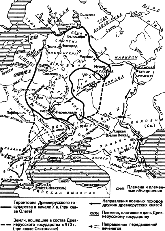 Русь в IX–X вв.: схема расселения восточнославянских племен и соседних народов