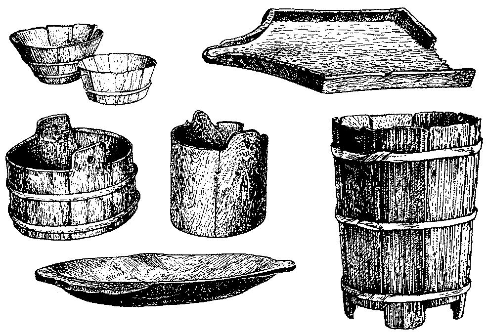 Сведения о деревенских плотниках и столярах, проживавших вне барских усадеб, единичны. Вероятно, крестьяне обходились своими силами, обычными навыками. Другое дело — мелкие деревянные предметы, которые во многих районах Европы оставались продуктами лишь домашнего деревенского ремесла, которое довольно рано товаризовалось. В России, Швеции, Финляндии деревня снабжала все население посудой, [87]