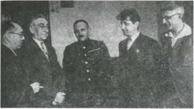 Обсуждение в бюро ЕАК. Слева направо: И. Фефер, Ш. Эпштейн, адмирал П.Трайнин, С. Галкин, С. Персов