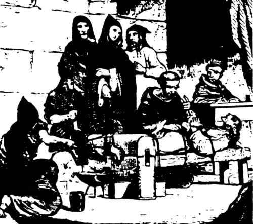 Как только его приводили к инквизиторам, палачи, одетые в длинный черный холщовый балахон и капюшон из той же материи, прорезанной на месте глаз, носа и рта, схватывали и раздевали его, оставляя на нем одну рубашку. Тогда инквизиторы, соединяя лицемерие с жестокостью, предлагали своей жертве сознаться в вине; если она продолжала ее отрицать, они отдавали приказание начать пытку и продолжали ее до тех пор, пока находили это нужным. Инквизиторы останавливали пытку лишь в случае ранения пытаемого, его смерти или повреждения суставов, что ставилось в вину самому же обреченному. Существовало три способа пытки: — веревкой, водой и огнем.