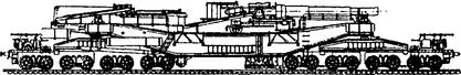 Большие размеры 356-мм пушки, а также длина отката, составлявшая почти 1,5 м, потребовали поднять ось цапф орудия на высоту около 6 м (5888 мм) над рельсами. Такая высота обеспечивала стрельбу на предельном угле возвышения +50 градусов без открытия котлована, но транспортер при этом не вписывался в габарит. Для решения этой проблемы использовали верхний подъемный лафет, примененный в американской 356-мм железнодорожной установке образца 1920 года.