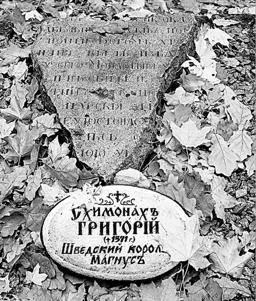 Зато сохранилась могила «Схимонаха Григория, шведского короля Магнуса» на старом монастырском кладбище Валаама. Как утверждают здешние предания, Магнус спасся во время бури и был подобран русскими монахами.