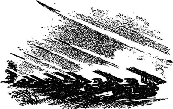 Однажды ничего не подозревавшие передовые части врага, полные уверенности в легкой победе, вдруг оказались засыпанными небывалым количеством смертоносных снарядов. Это были удивительные, невиданные снаряды: с огромной скоростью они прилетали откуда-то с неба, волоча за собой по небу огненный хвост. Их было так много, ложились они так часто, что огромная площадь, на которую они падали, буквально выжигалась. Фашисты оцепенели. Солдаты, орудия, танки — всё попадало под огневой ураган. Но не только сила огня испугала вражеских солдат — их испугало загадочное происхождение и странный вид снарядов…