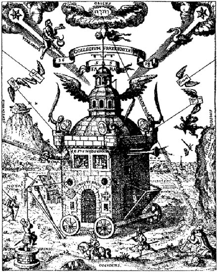 Далее читатель может сам попрактиковаться в разгадывании тайных смыслов этой гравюры, без сомнения пропагандирующей — в эмблематической форме — идеологию розенкрейцерского «Откровения». Гравюра как бы втягивает нас в круг непосредственных участников розенкрейцерского движения, и кажется, мы вот-вот поймем, что означало словечко ludibrium и что, собственно, было на уме у странных людей, создававших манифесты.