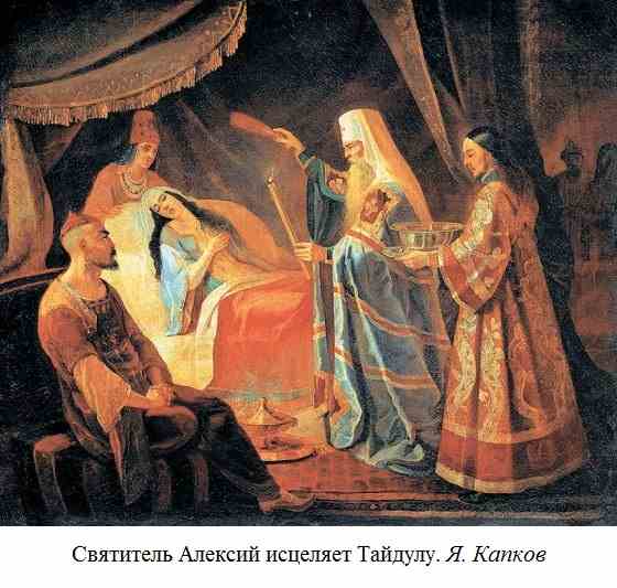 Митрополит, конечно же, поспешил в ставку и то ли благодаря своему врачебному искусству, то ли с помощью Божьей исцелил татарскую царицу. За это Тайдула даровала русской церкви различные привиле-