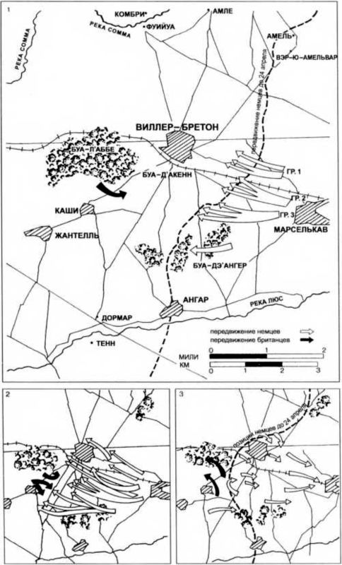 Схема танкового боя у Виллер-Бретонне 24 апреля 1918 г.
