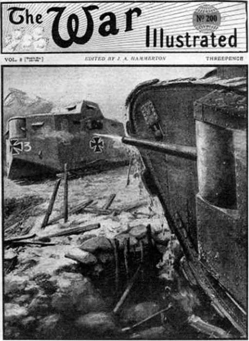 Британское издание «The War Illustrated» поместило драматический рисунок первого боя танков с танками у Виллер-Бретонне. Художник изобразил германский A7V почти по «горячим следам» довольно правдоподобно, но невольно спутал танк «Никсе», который вел дуэль с британскими танками, с захваченным танком «Эльфриде» (который и нес третий номер).