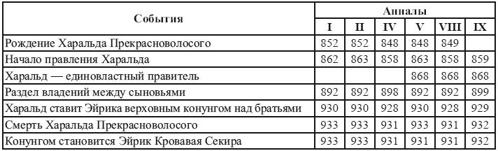 Тем не менее датировки анналов часто фигурируют в изданиях саг и комментариях к ним. А потому, не забывая об условности этого допущения, я все же считаю возможным при комментировании саговых текстов следовать за учеными, принимающими датировки «Королевских анналов» («Annales Regii»), и обозначать годы правления конунга Харальда Прекрасноволосого как 858–928.