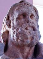 – Голова бородатого Геракла (борода является свидетельством зрелого возраста), голова Телефа (или юного Геракла – судя по львиной голове у него на затылке).